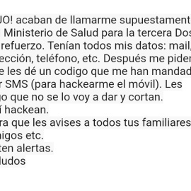 La llamada fraudulenta que pide "un código" de WhatsApp para una "tercera dosis de refuerzo" Por Luis M. García