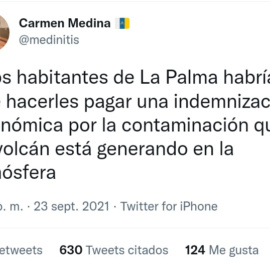 El polémico tuit que pide que los palmeros paguen una indemnización por "su volcán" Por Luis M. García