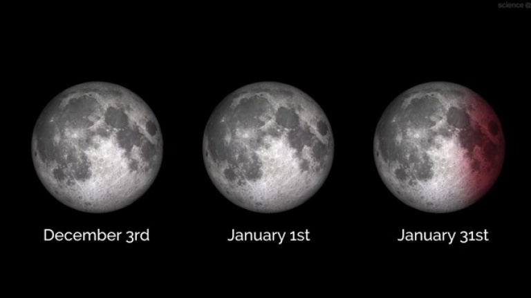 En las zonas referidas, el 31 de enero, la Luna perderá su brillo y adquirirá un brillo misterioso, más débil de lo normal, de la escasa luz solar que atraviesa la atmósfera de la Tierra. A menudo emitidas en un tono rojizo debido a la forma en que la atmósfera dobla la luz, las Lunas totalmente eclipsadas a veces se llaman 'Lunas de sangre'.