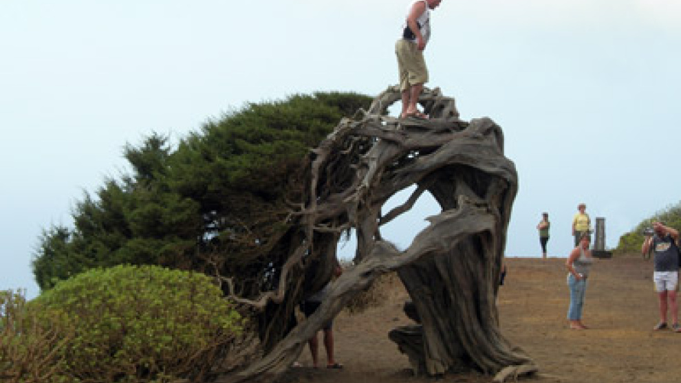 El símbolo vegetal más famoso de El Hierro está en peligro. La culpa no la tiene una enfermedad incurable, ni siquiera sus más de cinco siglos de edad. La amenaza se llama turismo. O más exactamente, un tipo de visitante cada vez más numeroso y menos respetuoso. "La van a dejar calva", asegura preocupado Juan Bautista, técnico de la Consejería de Medio Ambiente del Cabildo herreño. Y así va a terminar si no se consigue poner fin a una extraña moda cada vez más popular entre los turistas, arrancarle trozos como recuerdo del territorio más occidental de España.