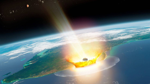 Hace 66 millones de años, en el límite entre las eras Cretácica y Paleógena, un gran asteroide impactó en la actual península de Yucatán (México), y provocó la extinción masiva de la vida en la Tierra, acabando con el reinado de los dinosaurios. El 60% de las especies del planeta, incluidos los dinosaurios no avianos, desaparecieron.