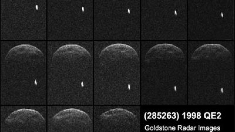 Aprovechando su paso cerca de la Tierra estos días, la NASA ha conseguido una sorprendente imagen del asteroide 1998 QE2 que revela que tiene su propia luna. Una secuencia de imágenes de radar del asteroide 1998 QE2 se obtuvo en la noche del 29 de mayo por científicos de la NASA con los la antena Deep Space Network en Goldstone, California, cuando el asteroide estaba a punto unos 6 millones de kilómetros de la Tierra.