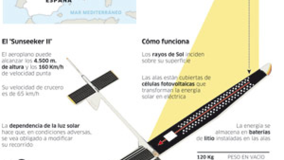Y, además, habrá intento de récord, ya que el equipo del Sunseeker II tiene previsto volar desde Zúrich hasta Barcelona sin hacer escalas. Si se consiguiera, sería el vuelo más largo que habría realizado jamás un aeroplano solar tripulado. Después, volarán hasta Cádiz. "Hemos contactado con el aeropuerto de Villamartín y es muy probable que ese sea el último destino de nuestra travesía", reconocen los responsables de la aventura.