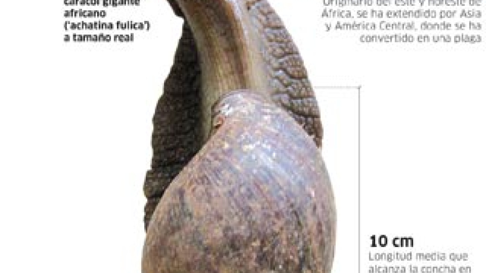 Vendo las crías de mis achatina fulica, tienen aproximadamente un mes y medio y ya van creciendo muy rápido, ahora son pequeñitas pero comen que da gusto...", dice un anuncio en internet. Y tanto. Pueden llegar a medir 30 centímetros de largo por 20 de alto, pesar un cuarto de kilo y vivir hasta los 9 años. Cada vez son más. Se consiguen a través de la red, en mercadillos callejeros e incluso en tiendas de animales. Y son baratas; el anunciante mencionado arriba las vende a tres euros.