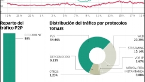 El estudio de iPoque ha monitorizado el tráfico de 80.000 internautas del sur de Europa, evaluando 100.000 gigabytes de datos suministrados por varias operadoras. Solo un 10% de la cifra no ha sido identificada.