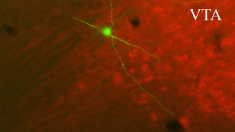 Los cuerpos de las neuronas de la VTA se sitúan en el tronco encefálico. Los axones de estas neuronas –prolongaciones especializadas en conducir el impulso nervioso desde el cuerpo celular (soma) hacia otra célula– liberan dopamina, inervando con este neurotransmisor la corteza cerebral y otras regiones cerebrales.