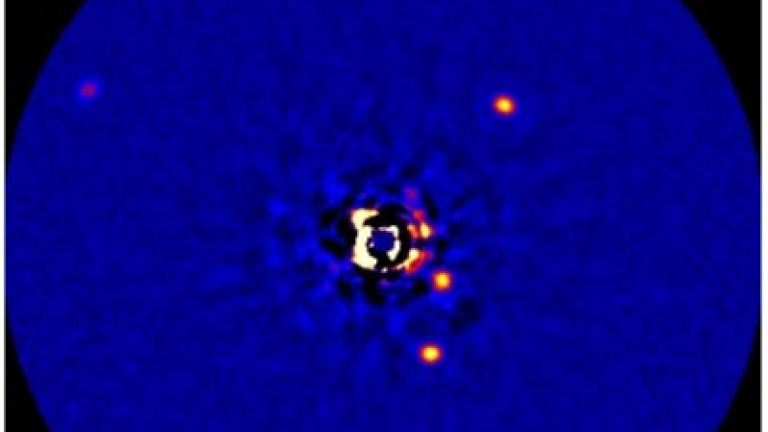 Está en torno a una estrella algo más grande que el Sol y casi cinco veces más luminosa. Hace dos años, sus tres planetas gigantes fueron el primer grupo de exoplanetas cazados en imágenes directas por telescopios terrestres a pesar de estar a casi 130 años luz de la Tierra. Ahora, nuevas imágenes del astro, llamado HR8799, desvelan la existencia de un cuarto objeto gigante que parece desafiar las leyes del universo.