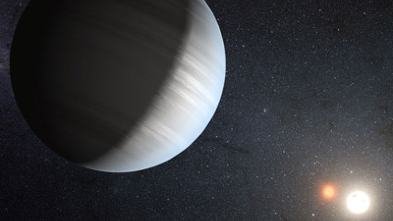 El sistema planetario, conocido como Kepler 47, contiene dos estrellas que giran una alrededor de la otra, cada 7,5 días. Una estrella es similar al Sol, mientras que la otra es una estrella diminuta, sólo un tercio del tamaño de la otra estrella, y unas 175 veces más débil.