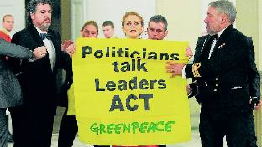 La Fiscalía danesa pedirá hasta tres años de cárcel (uno por allanamiento y dos por falsificación) para los cuatro activistas de Greenpeace incluyendo al director de Equo, Juan López de Uralde que desplegaron una pancarta en la cena de gala celebrada en el Palacio de Christiansborg durante la cumbre del clima de Copenhague, en diciembre de 2009. Se confirman así los cargos que el Ministerio de Justicia danés comunicó el 1 de marzo a los imputados, que incluyen además el agravante de delito contra la reina.