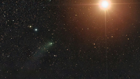 Un total de cinco satélites --MAVEN, MRO y Mars Odyssey de la NASA, Mars Express de la Agencia Espacial Europea (ESA) y Mars Orbiter de la Agencia Espacial India (ISRO)-- se encuentran actualmente en la órbita marciana. Sin embargo, una de las fotografías más precisas de este momento ha sido captada desde la Tierra. En ella se puede ver el momento en que el cometa, en la parte inferior izquierda, pasa muy cerca del planeta, la luz brillante en la parte superior derecha de la imagen.