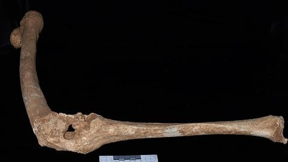 Uno de los esqueletos pertenece a un hombre de unos 45 años, sorprendentemente alto para su época (unos 180 centímetros), cuyo fémur y tibia muestran una fusión ósea completa a la altura de la articulación de la rodilla, así como un orificio en la misma, provocado por una herida penetrante que la atraviesa. Este individuo padecería una notable cojera. Además, hay signos en uno de los cóndilos occipitales -protuberancia redondeada en el extremo de un hueso que encaja con el hueco de otro para formar una articulación- que sugieren tortícolis, un posible efecto compensatorio debido a la marcha irregular del sujeto.
