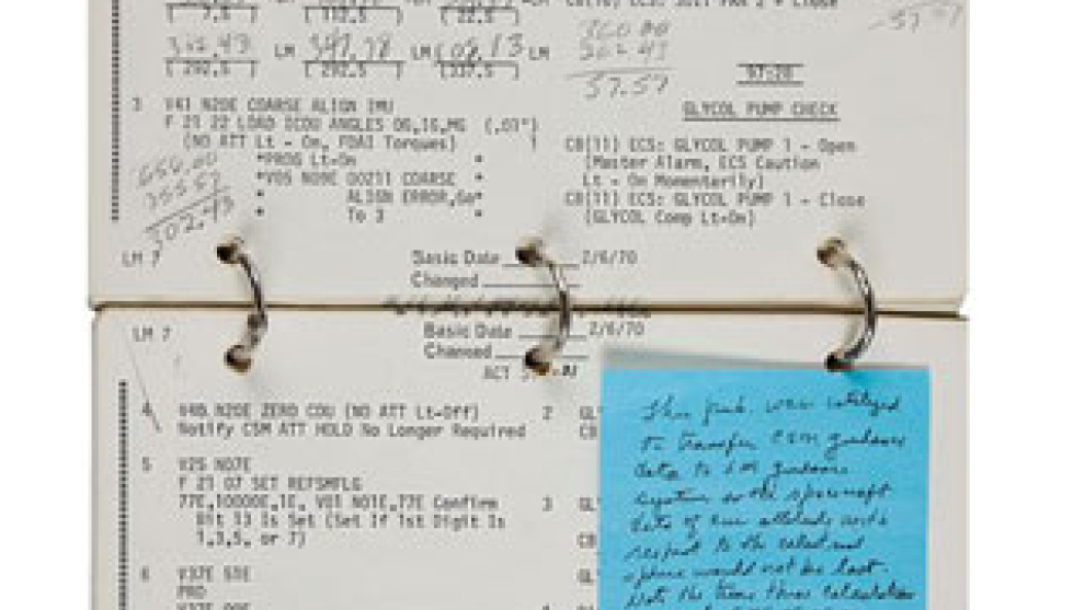 El pasado noviembre, el manual de operaciones del Apolo 13 se vendió en una casa de subastas en EEUU por 388.375 dólares (casi 300.000 euros), el precio más alto que se ha pagado nunca por un documento espacial. Fue adquirido por un comprador de la Costa Este de EEUU al que la casa de subastas Heritage Auction no quiso identificar, según Collectspace.com. Por ahora, el artículo no llegará a su comprador.