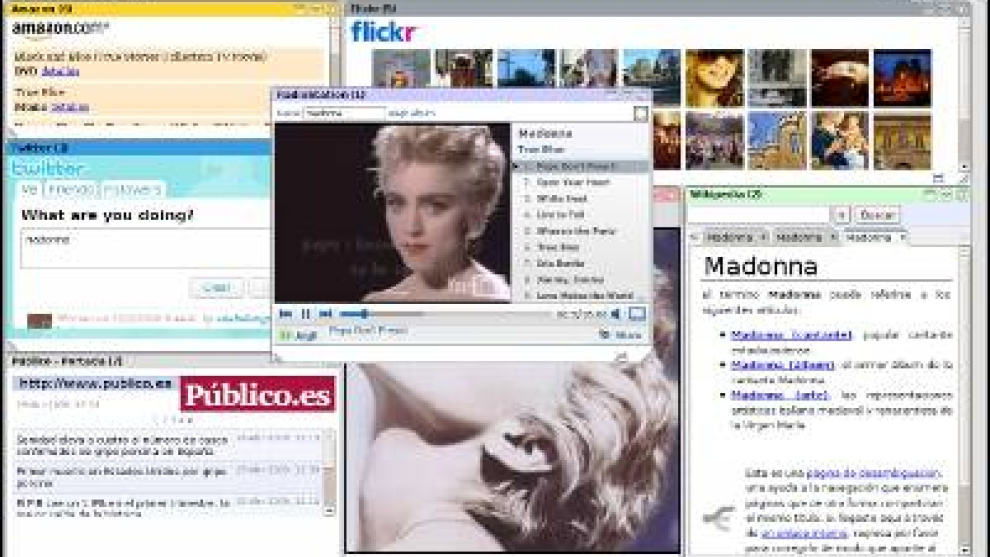 "Todo lo que sea un recurso web puede ser incorporado en EzWeb", explica el presidente de Morfeo y experto tecnológico principal en tecnologías software de Telefónica I+D, Juan José Hierro. El sistema, que aún está en fase de pruebas, cuenta con unos 100 servicios web o gadgets. Con dos o tres clics se pueden añadir a la página sitios como YouTube, Twitter o el periódico on-line preferido. Eso lo hacen también iGoogle o NetVibes, pero no conectan los distintos gadgets entre ellos. Una nueva noticia, por ejemplo, puede ser conectada con la agenda telefónica y enviada por SMS a un contacto.