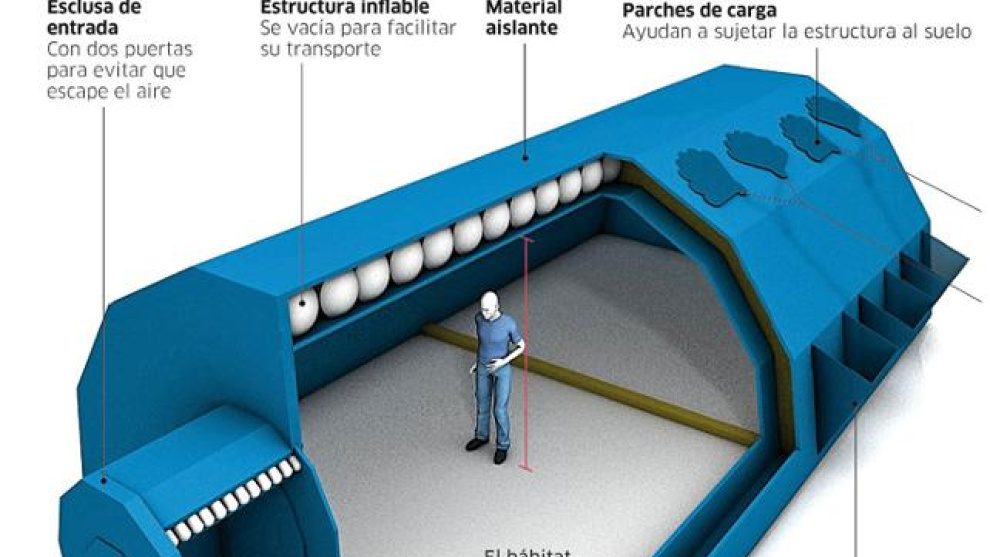 Los viajeros espaciales de las próximas misiones lunares tendrán un techo que les acoja. La NASA presentó el pasado miércoles, en las instalaciones de la empresa ILC Dover en la localidad de Frederica (EEUU), el prototipo de hábitat hinchable que podría convertirse en el hogar de los astronautas participantes en la exploración lunar programada para 2020.