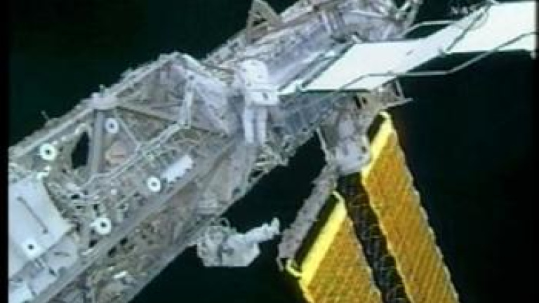 Durante la pasada visita del transbordador Discovery a la EEI, entre octubre y noviembre, Tani detectó que unas astillas de metal se habían introducido en el mecanismo giratorio del panel, causando una ligera vibración. Por razones de seguridad, el panel se bloqueó en posición fija. Hace 10 días, los circuitos de una segunda articulación quedaron obstaculizados. Los tripulantes sospechaban que el daño se debió al impacto de un micrometeorito.