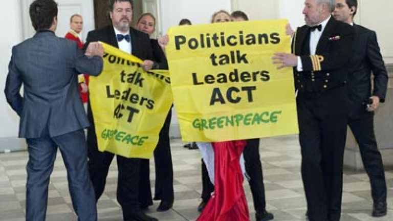 La Fiscalía danesa acusa a los 11 activistas de allanamiento de morada, falsificación de documentos y suplantación de funcionario público. Además, el ministerio fiscal ha recurrido a un cargo que según Greenpeace no se empleaba desde 1934: delito contra la reina. Además de la monarca, en el palacio se encontraban presidentes y jefes de Estado como el español José Luis Rodríguez Zapatero, el francés Nicolas Sarkozy o el venezolano Hugo Chávez. También estaban presentes el primer ministro británico, Gordon Brown, y la canciller alemana, Angela Merkel.