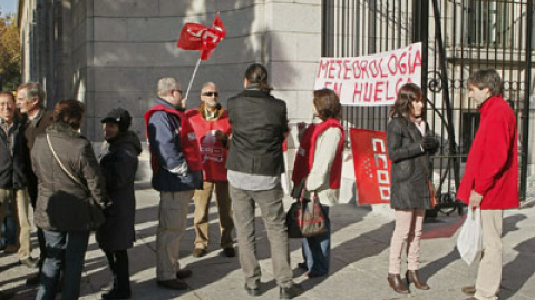 Una treintena de trabajadores de la Agencia Estatal de Meteorología (Aemet) protestaron ante el Ministerio de Medio Ambiente para denunciar el "desmantelamiento" del servicio de predicción de fenómenos meteorológicos adversos, lo que, en su opinión, creará "situaciones de riesgo para la seguridad nacional". La huelga, convocada por Comisiones Obreras, no pretende, según su portavoz, Miguel Martínez, una mejora salarial, sino denunciar la rebaja de los servicios de vigilancia de los fenómenos adversos, ya que de "los 11 centros que hoy desempeñan estafunción sólo seguirán el de Madrid y Valencia".