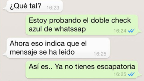 Muchos usuarios de WhatsApp temían que llegara este día pero ha llegado. El popular aplicación de mensajería instantánea ha introducido una novedad que llevaba tiempo probando. Se trata de un doble check azul que indica que un mensaje ya ha sido leído. Sí. Han leído bien. A partir de ahora ya no habrá excusas para contestar que no han respondido a alguien porque no se ha leído el mensaje. El control de los usuarios sobre el resto de contactos se multiplica.