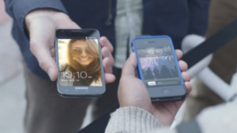 En uno de sus anuncios, la empresa electrónica muestra como los fanáticos de Apple hacen cola en varias ciudades de EEUU para comprar un último modelo de Iphone muy parecido al anterior y con problemas de batería, en alusión velada a la decepcionante entrega del iPhone 4S.