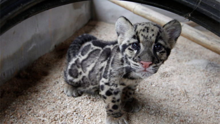 La pequeña cría de pantera nebulosa Lek (pequeño) juega en un centro pionero en la reproducción de la pantera nebulosa en cautividad, dirigido por el veterinario español Fernando Nájera, en el Zoo Khao Kheow en Chonburi (Tailandia) hoy, domingo 27 de mayo de 2012. En cautividad las panteras nebulosas son solitarias y sólo se relacionan para procrear, pero en cautividad se vuelven en su mayoría monógamas, lo que añade otra dificultad para conseguir que se reproduzcan. También conocidos como leopardos longibandos, estos felinos llegan a pesar 65 kilogramos y se distinguen por las manchas negras en su pelaje que les ayuda a camuflarse. El proyecto de Khao Kheow nació fruto de un acuerdo entre la Organización de Parques Zoológicos de Tailandia, el programa norteamericano de la Pantera Nebulosa SSP, así como los zoológicos estadounidenses de Nashville, el Smithsonian y el Point Defiance. EFE/Barbara Walton