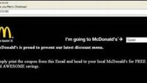 Un mensaje de correo electrónico que aparece como una oferta navideña de McDonald's esconde un virus que se trasmite a todos los contactos