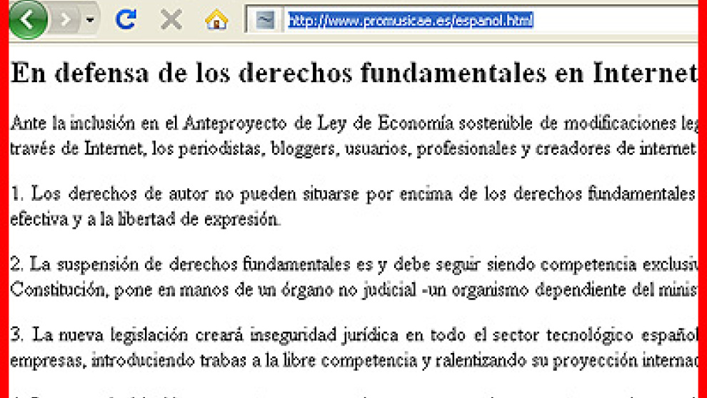 A última hora de la tarde de hoy, la web de la Asociación de Productores de Música de España ofrecía un único contenido: el manifiesto en defensa de los derechos fundamentales en Internet
