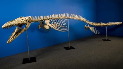 La estrella de la puja es uno de los pocos esqueletos conservados de Mosasaurus bagei, un reptil marino de la época de los dinosaurios por el que la casa de remates espera sacar más de 300.000 euros. Como una obra de Tàpies.