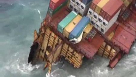 El buque carguero liberiano Rena se ha partido en dos a causa del fuerte oleaje y después de permanecer encallado cerca de la costa de Nueva Zelanda durante tres meses.