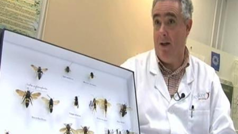 La temida avispa asiática ('Vespa velutina'), la que ataca a la abeja y es capaz de diezmar las colmenas, ha cruzado ya el Bidasoa. Los apicultores han avistado los primeros ejemplares de 'Vespa velutina' este verano en Irún, Hondarribia y Oiartzun. Este insecto ya había sido detectado por primera vez en Europa en la región francesa de Aquitania. Sospechan que llegó vía puerto de Burdeos, dentro de un container. Y hoy en día se ha expandido hasta 32 departamentos, «a una velocidad impresionante», según dijo ayer el veterinario de la asociación de apicultores, Egoitz Galartza.Se sabe con certeza que es la 'Vespa velutina', pues se enviaron unos ejemplares a la sección de entomología de Neiker. Tiene una longitud de 30 milímetros y las reinas pueden ser incluso mayores. Su corpulencia es tres veces mayor que la de la abeja europea.¿Cómo se puede controlar al insecto invasor? Por ahora no existe la fórmula ideal, la de trampa de feromona, que atraería solo a esta especie.