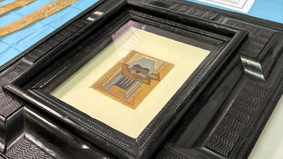 "Pensó que era algún paquete que algún vecino se había dejado al entrar o salir del inmueble y se lo llevó a la portería, sin más", dice esta fuente cercana al propietario de Naturaleza muerta con guitarra, un pequeño cuadro con técnica de gouache y mina de plomo sobre papel, de 12,7 x 9,8 centímetros.