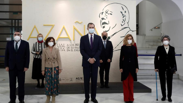 Este jueves a mediodía ha tenido lugar la joya de la corona del programa que el ejecutivo ha preparado para conmemorar el 80 aniversario de la muerte de Manuel Azaña en el exilio: una exposición en la Biblioteca Nacional que iba a tener como padres pródigos al presidente del Gobierno, Pedro Sánchez y al rey, Felipe VI, pero que se ha quedado huérfano de uno (quizá el menos pródigo, pues no deja de ser irónico que el bisnieto de Alfonso XIII rinda homenaje a Azaña), ya que el Presidente está en cuarentena por haber estado en contacto el lunes pasado con Enmanuel Macron, positivo en covid. En su lugar han acudido el ministro de Cultura, José Manuel Rodríguez Uribes, la vicepresidenta Primera, Carmen Calvo, y la presidenta del Congreso Meritxell Batet.