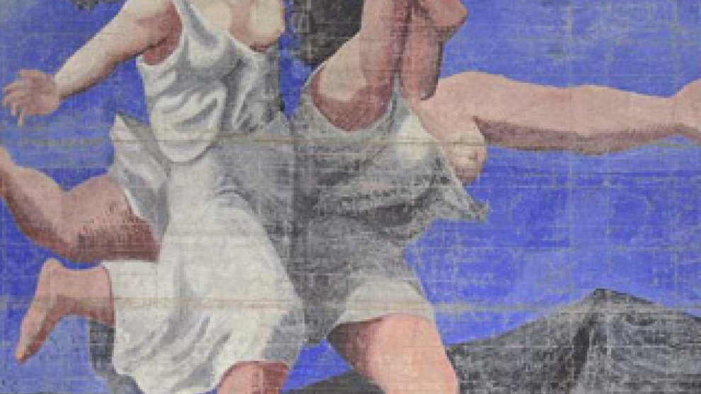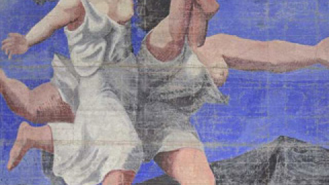 Picasso fue uno de los que cayó bajo su encanto y su palabrería. En la exposición, se puede apreciar en su inmensidad los 120 metros cuadrados del telón de escenario diseñado por Picasso para el ballet 'El tren azul', inspirado en el cuadro 'Dos mujeres corriendo por la playa'. Y el vestuario realmente cubista que ideó para 'Le Tricorne', con música de Falla.