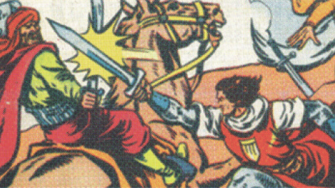 La mayoría de las viñetas exhibidas son de los años cincuenta, cuando la España de Franco aún era una potencia colonial en Marruecos y el racismo para con los árabes no molestaba a nadie. Inolvidable la imagen de legionarios martirizando a unos musulmanes en Audaces legionarios (1958), de Leopoldo Ortiz. También aparece el famoso Capitán Trueno en plena cruzada. "Lo árabe y lo musulmán se veían como un enemigo, un malvado", explica Gema Martín Muñoz, directora de Casa Árabe.