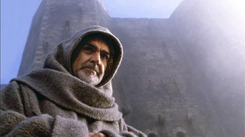En El nombre de la rosa, dos monjes, el franciscano Guillermo de Baskerville (personaje basado en el filósofo Guillermo de Occam y en el detective literario Sherlock Holmes) y su pupilo, Adso de Melk, investiaban una serie de asesinatos en un monasterio benedictino, todos ellos relacionados con un libro prohibido.