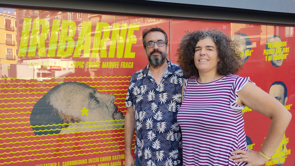 Iribarne es nuestro personaje, que no es Fraga. Es decir, no hay una dramaturgia realista ni ningún personaje que se caracterice de Fraga a nivel físico. Iribarne tiene como referencia a Fraga, pero no es él en sí mismo. Nos parecía interesante jugar con el apellido porque, en realidad, muchos personajes hacen de Fraga, por eso no es un biopic al uso. En la obra hay diferentes capas de lectura y nos interesó dejar claro desde el principio que eso que se ve en el escenario no es Fraga, sino nuestro Iribarne.