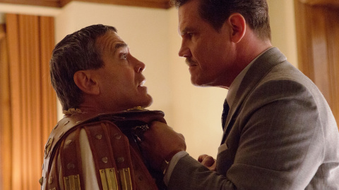 Los Coen, sin embargo, no exprimen el verdadero filón de aquel personaje, el Mannix real, del que siempre se sospechó que estaba detrás de la muerte de George Reeves, famoso por encarnar a Superman en televisión. Esto ya lo hizo Allen Culter en Hollywoodland en 2006, con Bob Hoskins. Aquí, en ¡Ave, César!, el personaje se dedica más a tapar juergas ‘indecentes’ de las estrellas del estudio –“no toques nada, voy para allá”-, buscar maridos o esposas cuando son necesarios, calmar la ira de algún director o pagar el rescate de algún secuestro.