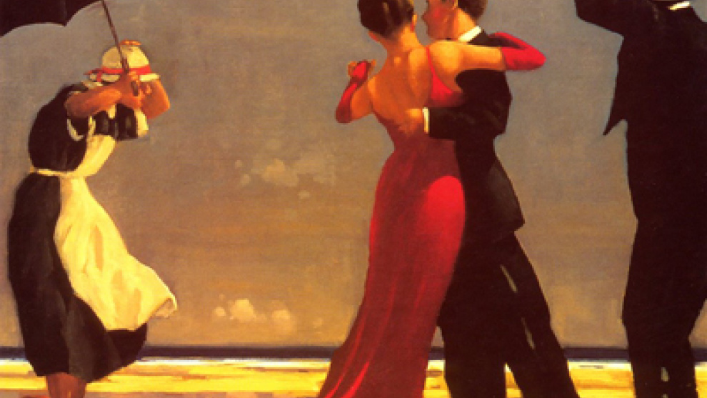 Jack Vettriano (Fife, Escocia, 1951) es un pintor con ráfagas de melancolía, habilidoso para crear ambientes y personajes (no personalidades) a la espera de algo o de alguien; elegantes hombres y mujeres casi siempre en tránsito, insinuándose.