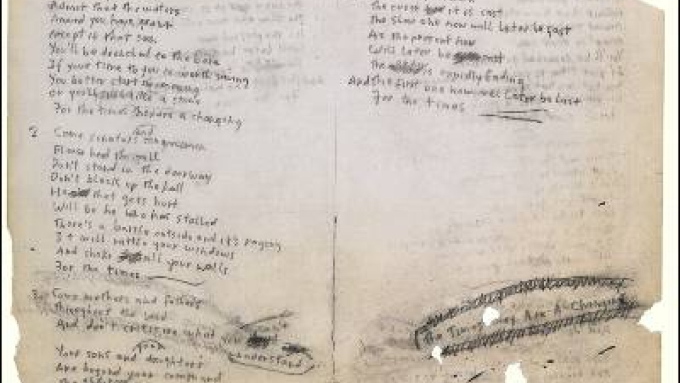 Un coleccionista paga una fortuna por el manuscrito de la canción 'The Times They are A-Changin'