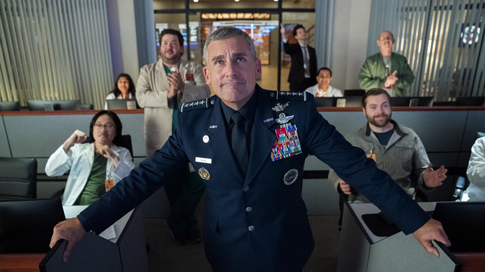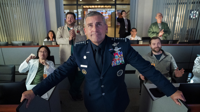 Uno de los grandes atractivos de Space Force reside en los nombres involucrados en ella. Uno de sus creadores es Greg Daniels. Asociado a The Office en su versión estadounidense y a Parks and Recretation, es responsable también de la reciente Upload, estrenada este mismo mes en Amazon y que ha cosechado el aplauso del público con una segunda temporada ya confirmada. Ha sido un gran mes para Daniels después de años desaparecido de la primera línea de escritura. En esta comedia para Netflix une fuerzas y talento con Steve Carell, que, además de ejercer como creador y productor, se mete en la piel del general Mark Naird, un tipo al que no le faltan buenas intenciones y tesón.