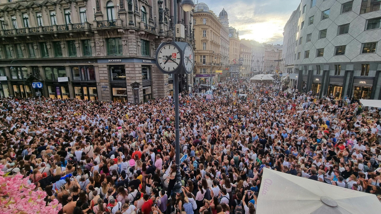 Los fanáticos de la cantante estadounidense Taylor Swift se reúnen en el centro de la ciudad tras la cancelación de los conciertos. Wolfgang Hauptmann / EP