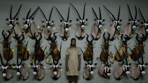 Esa es la imagen del nuevo colonialismo que Ulrich Seidl exhibe contundente con unas poderosas imágenes, que parecen congeladas, de estas personas sentadas frente a la cámara o de pie, en medio de una pared repleta de las cabezas-trofeo del rancho o de cráneos colgados en la uralita de sus chozas o al lado de una miserable cuerda en la que han colgado los rabos de los animales.