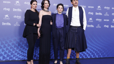 El equipo de la película 'Los renglones torcidos de Dios' a su llegada a la XXXVII edición de los Premios Goya