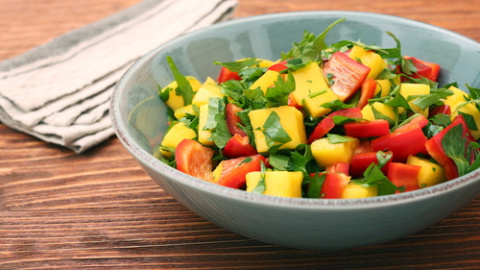 Receta de ensalada de mango, tomate, pimiento y perejil