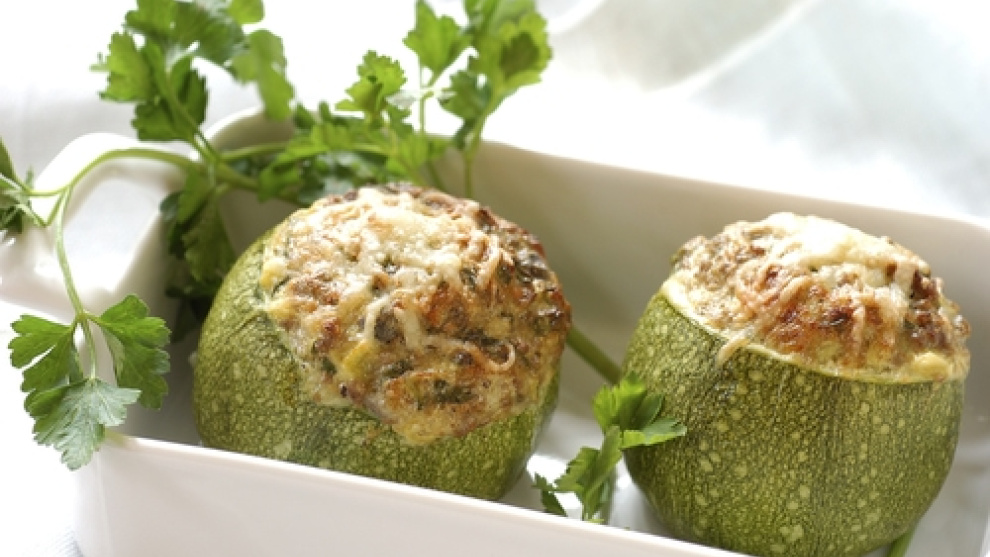 Excelente receta que combina verdura y carne, horno y queso, paladar y alegría, con un resultado sorprendente. No necesitas ser un genio de la cocina para lograr un plato más que óptimo. Es mejor, no obstante, usar la variedad de calabacín redondo (facilita el relleno). Los reconocerás porque parecen calabacines obesos, o un bastardo surgido de un encuentro fugaz, de unas pepitas al aire, con una calabaza. Se extrae la pulpa con un sacabolas o con un cuchillo, formando un hueco, conservando intactas las paredes del vegetal... después se rellena. Los calabacines rellenos al horno se convierten así en un contenedor de prodigios. Una lámpara con su genio dentro. Para el relleno se puede usar carne picada, gambas, verduras, atún, pollo... La salsa de tomate realza el conjunto. Se pasa por el horno con un sello de queso rallado y de este modo obtienes un comestible divertido, una nueva forma de alegrar tus días.
