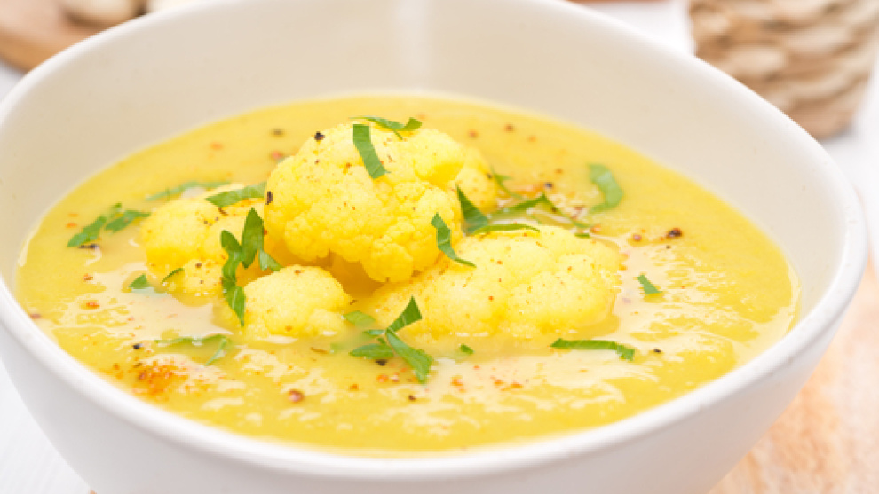 Una vez entras en el submundo de las cremas de verduras, todo cambia. Se cumple el viejo eslogan del Plan Nacional de Drogas: "No sales". Empiezas con una cremita tonta de champiñones y acabas chutándote esta receta de coliflor con curry. Adictivas, son perfectas para el invierno. Apetitosas, fáciles de digerir, unas seductoras natas en la cocina. Creadoras de paraísos palatales, erizan las papilas gustativas. Son una forma sabrosa de ingerir verduras, alimentos que forman la piedra angular de nuestra dieta, no nos cansaremos de repetirlo. La crema de coliflor con curry no es una excepción. Su base está en el equilibrio, en la combinación de esta especia originaria de la India con el punto ligero que caracteriza a esta hortaliza blanca y tan versátil. No es una receta complicada y puede alegrar el universo de tus cremas.