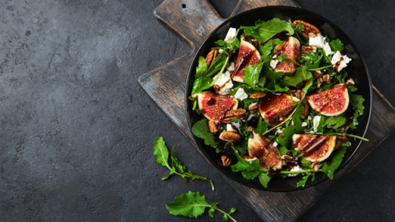 Los higos son dulces y generosos, un regalo de la naturaleza. Ricos en azúcares naturales, minerales, fibra, y antioxidantes. Y encajan de maravilla en una ensalada, siempre que los acompañes de hojas verdes - que contrasten con su sabor amargo- y queso- que dispare el umami. Así tendrás una ensalada afrutada y completa, con el punto dulzón que dejan los higos y que bien combinado es tan sugerente.