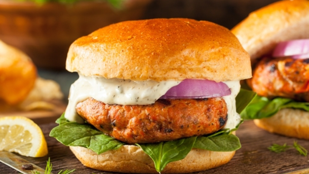 La hamburguesa de salmón es una forma diferente, divertida, y juguetona de tomar pescado. Se trata de una alternativa más saludable que la clásica hamburguesa de carne picada y, además, no es difícil de preparar (por lo que vale la pena hacerla en casa y no recurrir a los productos procesados de los supermercados). Se necesita carne de salmón limpia (lomos frescos y sin espinas), y con apenas cuatro ingredientes se consigue una hamburguesa de pescado muy sabrosa. Después puede montarse con pan, lechuga, tomate y salsas a discreción, al estilo tradicional.