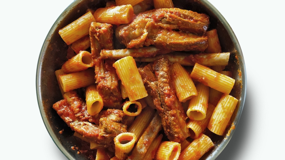 No parece una combinación típica, pero para los amantes de la carne y la pasta (es decir, un ciudadano argentino, por ejemplo) puede ser un plato excepcional. Hablamos de mezclar el asado con esencia italiana: usar unos buenos macarrones para saltearlos con una salsa de costillas de cerdo.
