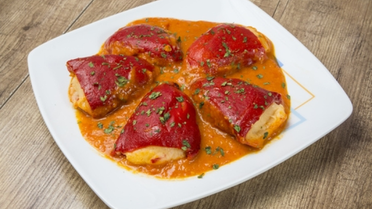 Pimientos del piquillo rellenos de bacalao precocinados (3 por persona).
