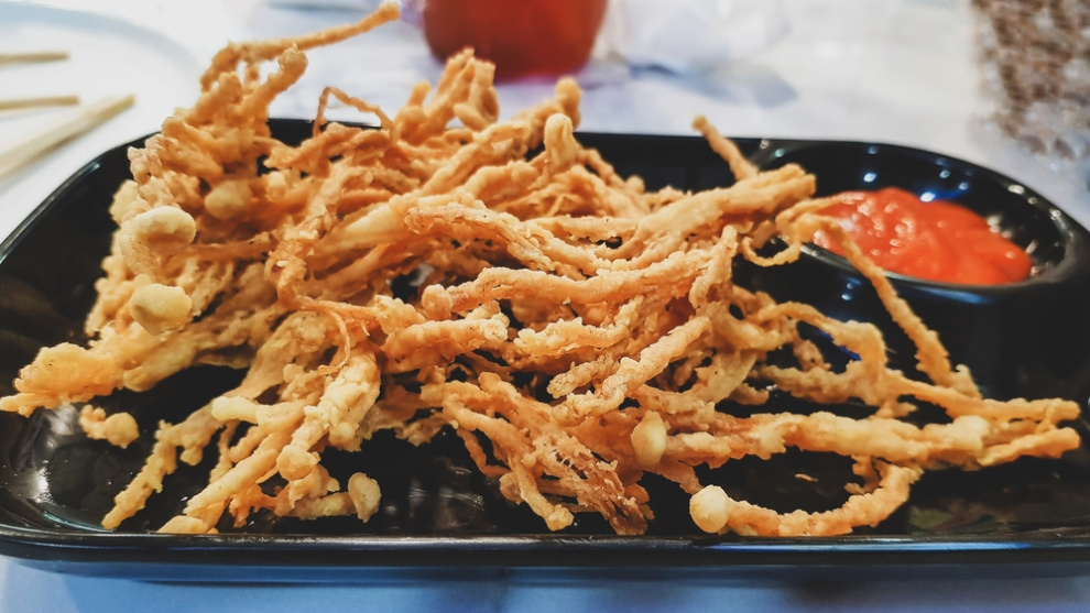 Las setas enoki son un tipo de hongo filamentoso y de color blanco que se cultiva principalmente en Asia. Muy apreciadas en la cocina japonesa y china, destacan por su sabor delicado y su textura firme. Se pueden utilizar en todo tipo de platos: en sopas, a la plancha como acompañamiento, en arroces, o también como aperitivo, en tempura o rebozadas, tal como te explicamos aquí.
